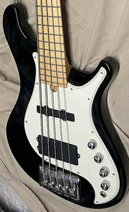 For 5-string bass, 11 screw holes, J neck pu, MM bridge pickup, 4 knobs & jack, does not have mini toggle switch