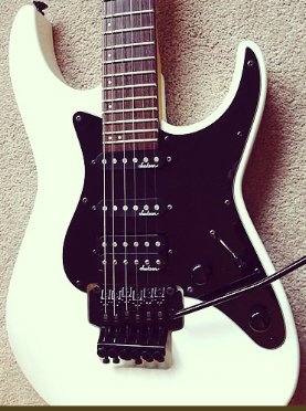 Single/Single/Hum pickups, 11 screw holes, 2 knobs & switch, cut for Floyd Rose tremolo bridge