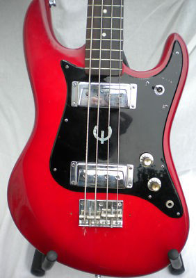 & jack, 4-hole mount pickups, no “E” graphic on guard, Bass was made in Japan