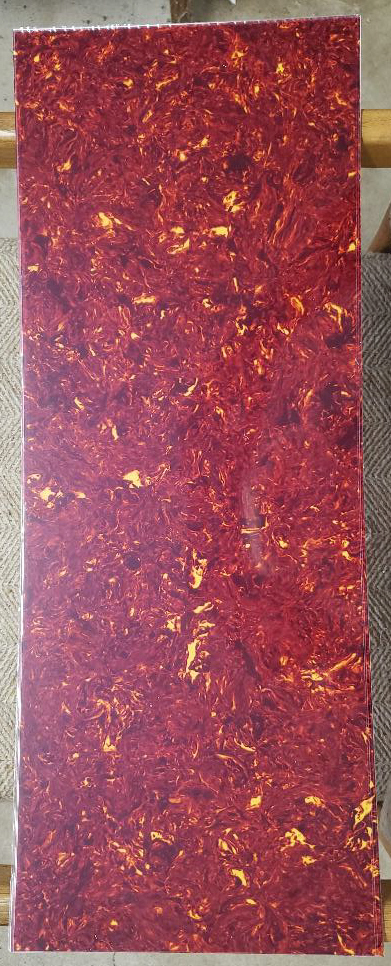 Sheet of Pickguard Material for making pickguards & plates. Material has finished surface masked unless noted as “Distressed Surface”, which is usually NOS material with no masking.