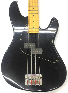 7 screws, split “P” style pickup, large hole for knob, pickguard wraps around end of neck