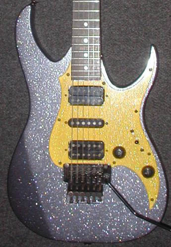 2 humbuckers & single coil mid pickup, Gap between top of neck pickup & neck cutout measures 11/32″, 2 knobs & switch, 9 screw holes, cutout for locking trem