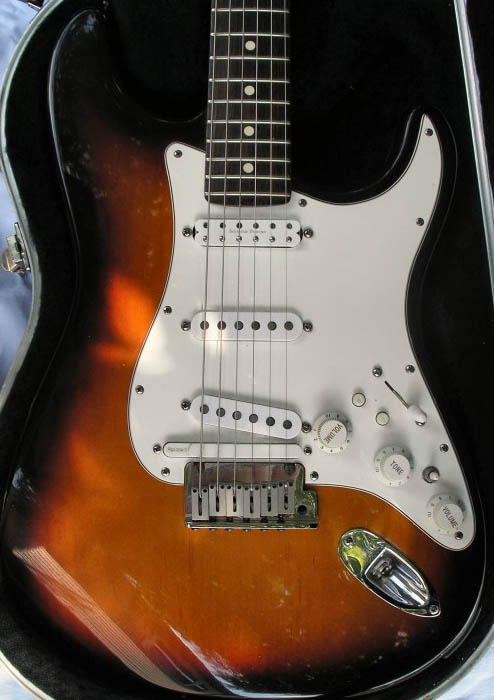 The middle single coil pickup is in a different location from regular Strats: (1-5/16″ between neck & middle pickup), 2 single coils with the bridge pickup a 2-hole mount exposed-coil humbucker, 11 screws, 3 knobs & blade switch