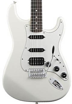 11 screws, 2 single coils & bridge humbucking pickups with the bridge pickup a 3-hole mount exposed coil humbucker, 3 knobs & blade switch