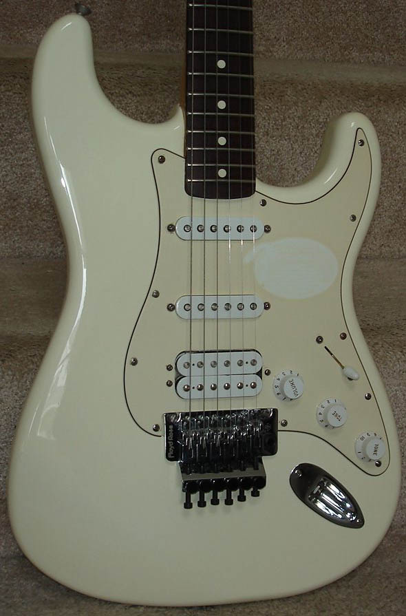 11 screws, 2 single coil & 3-hole mount humbucker at bridge, 3 knobs & switch, Floyd Bridge bridge cut