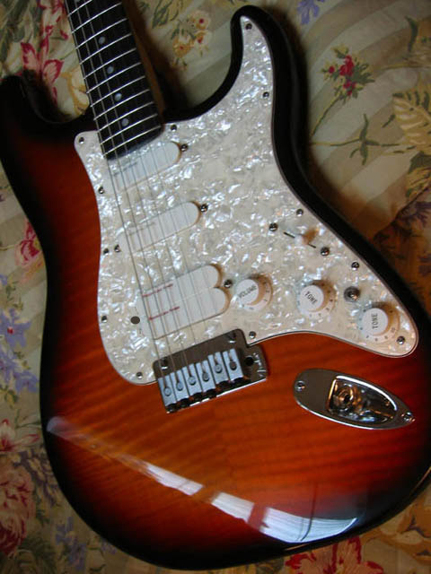 2 Lace Sensors with 2-hole mount Lace Dually humbucker, 11 screws, 3 knobs, mini toggle & blade switch (Photo by Xhefri)