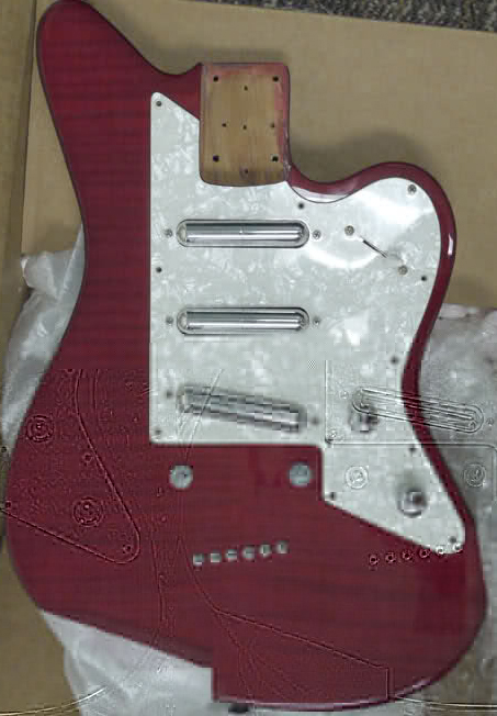 3 lipstick pickups, 2 knobs & 5 way, 11 screw holes, note location of volume knob & 5 way