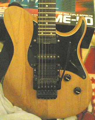 Note that pickguard wraps around top corners of humbucker.
