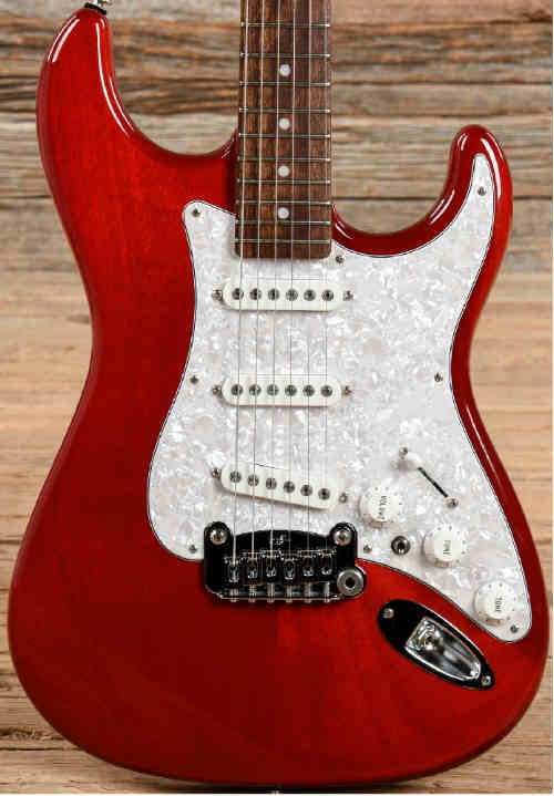 3 single coil pickups, cut for G&L Tremolo bridge, 8 screw holes, 3 knobs, 5-way switch, mini toggle switch