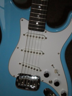 Non-tremolo, 4-bolt neck. 3 knobs, 5-way & mini toggle switches, 3 single coil pickups