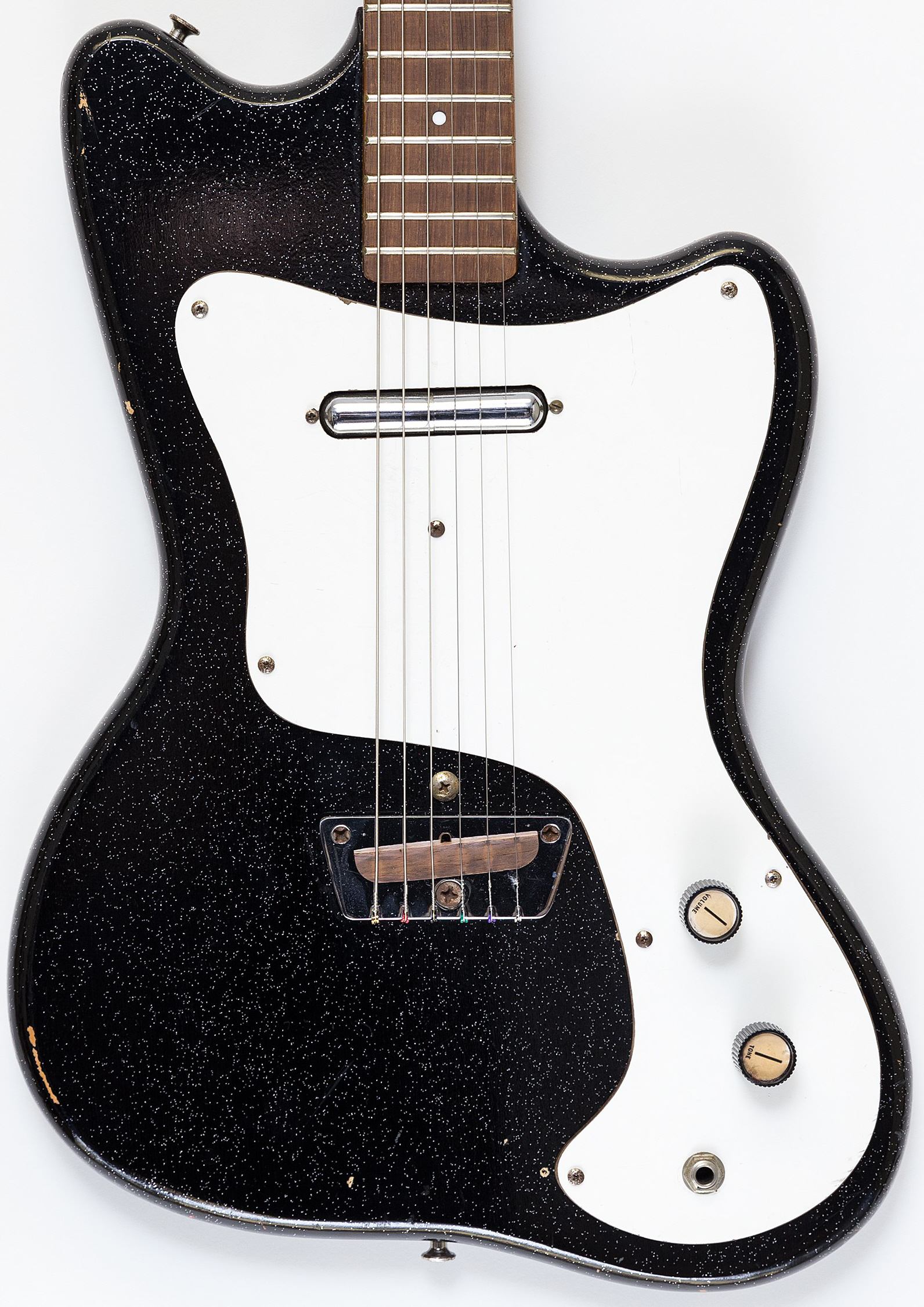 7 screw holes, 1 lipstick pickup, 2 knobs & jack, This Silvertone model was manufactured by Danelectro in Neptune, NJ; only fits this vintage model, not reissues or imports
