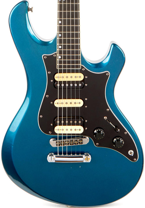 2 humbuckers (3 hole mount) with single coil (3 hole mount) mid pickup, 12 screw holes, 2 knobs, mini toggle & blade switch