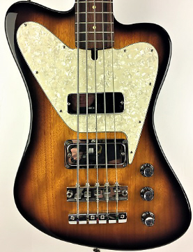 for non-reverse 5-string T Bird style, 10 screw holes, cut for 5-string T Bird style pickup & truss rod adjust